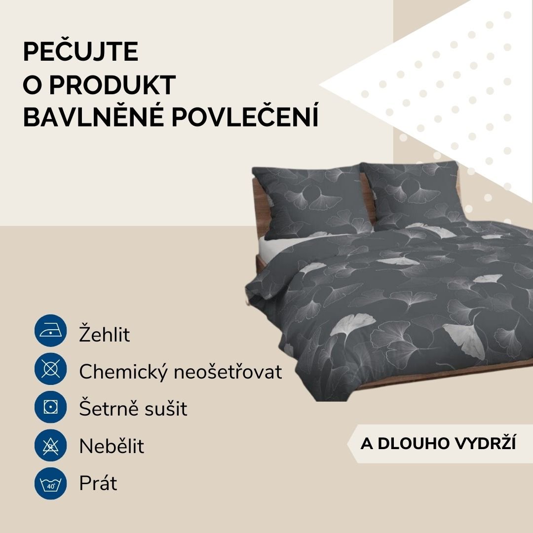 Péče a údržba: Povlečení lze prát v pračce do 60°C, což usnadňuje jeho údržbu. Stálost barev a kvalita materiálu zajišťují, že i po mnoha vypráních bude vypadat jako nové a je vhodné pro sušení v sušičce, což vám ušetří čas i úsilí.